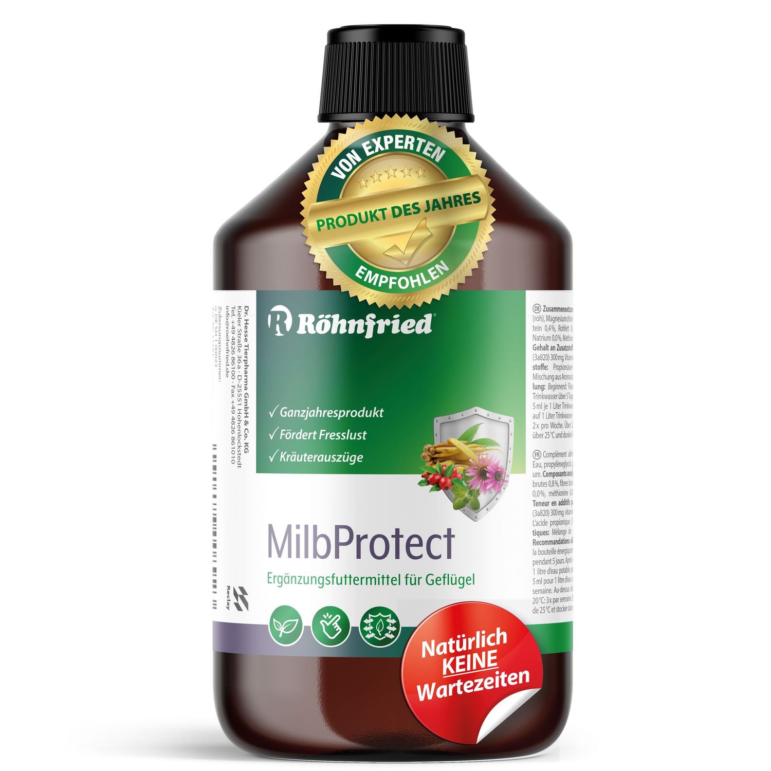 MilbProtect ist ein flüssiges Ergänzungsfuttermittel mit hochwertigen Pflanzenauszügen, das die Fresslust steigert und geschwächte Tiere bei starkem Milbenbefall unterstützt. Es hilft, Stressreaktionen wie Federpicken oder nachlassende Legetätigkeit zu reduzieren und trägt zu einer besseren Versorgung und mehr Wohlbefinden bei.