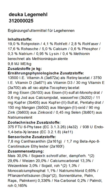deuka Legemehl– Ergänzungsfutter für Legehennen